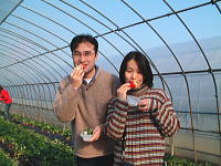2003.1.19 フィリピンからの方がたくさんいた団体さん。終始楽しそうに笑顔いっぱいでいちご狩りをさてれていました。